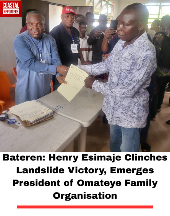 The Omateye Family Organisation in Bateren, Warri South West Local Government Area, has elected Mr. Henry Tonghanranrose Esimaje as its new President following a resounding landslide victory at an election conducted on Friday, February 27.