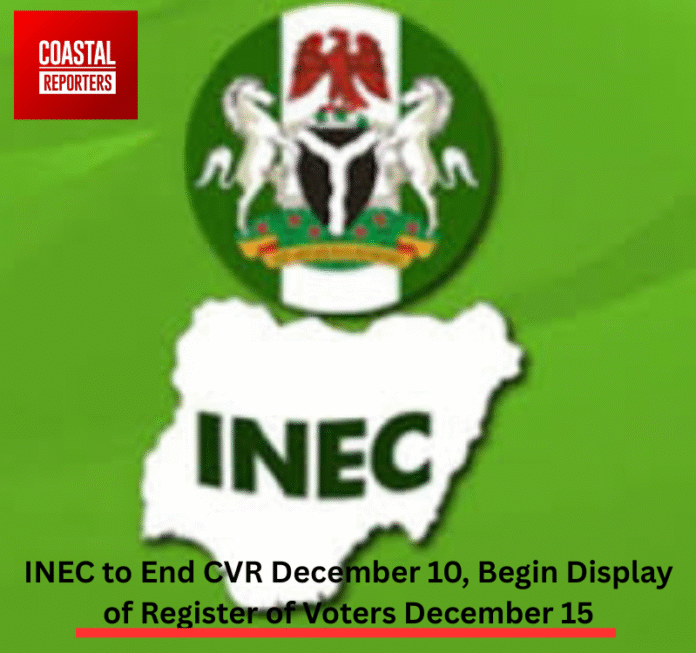 The Independent National Electoral Commission (INEC) has announced that the ongoing nationwide Continuous Voter Registration (CVR) exercise will officially come to a close on Tuesday, December 10, 2025.
