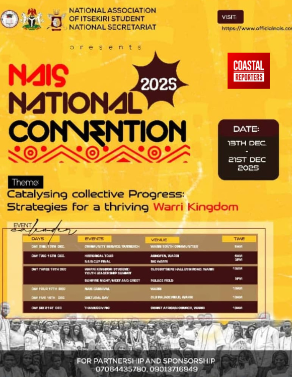 The National Association of Itsekiri Students (NAIS), National Secretariat, has announced the commencement of its 2025 National Convention, a multi-day event scheduled to hold from December 13th to 21st, 2025, across designated venues in Warri, Delta State.
